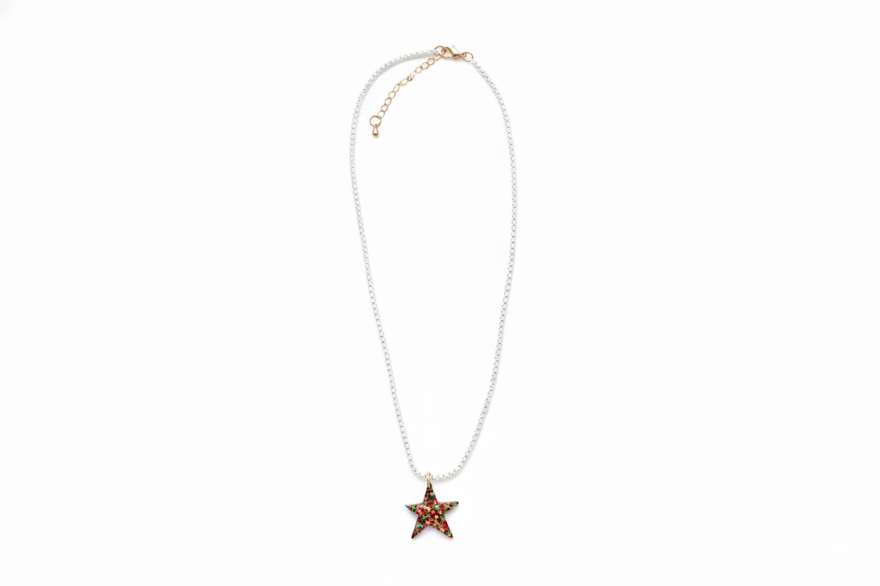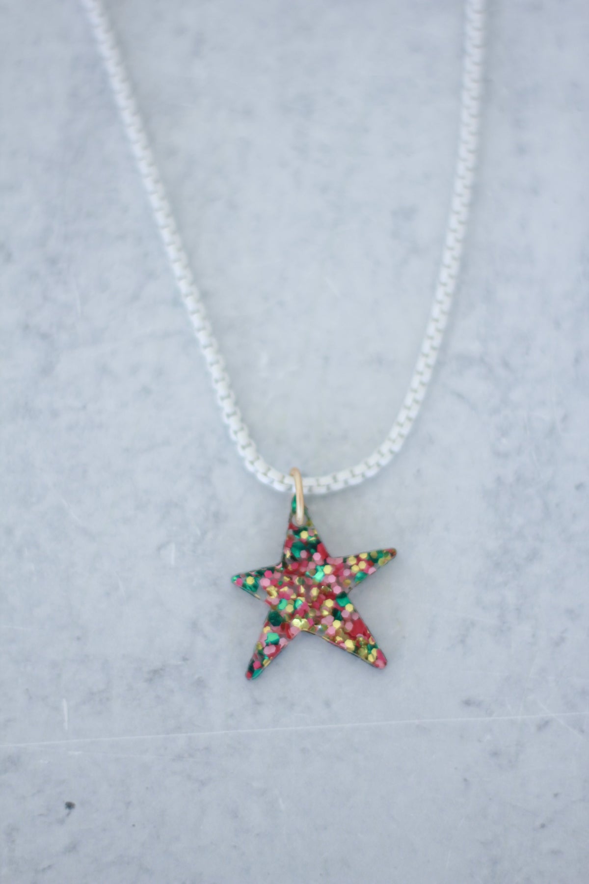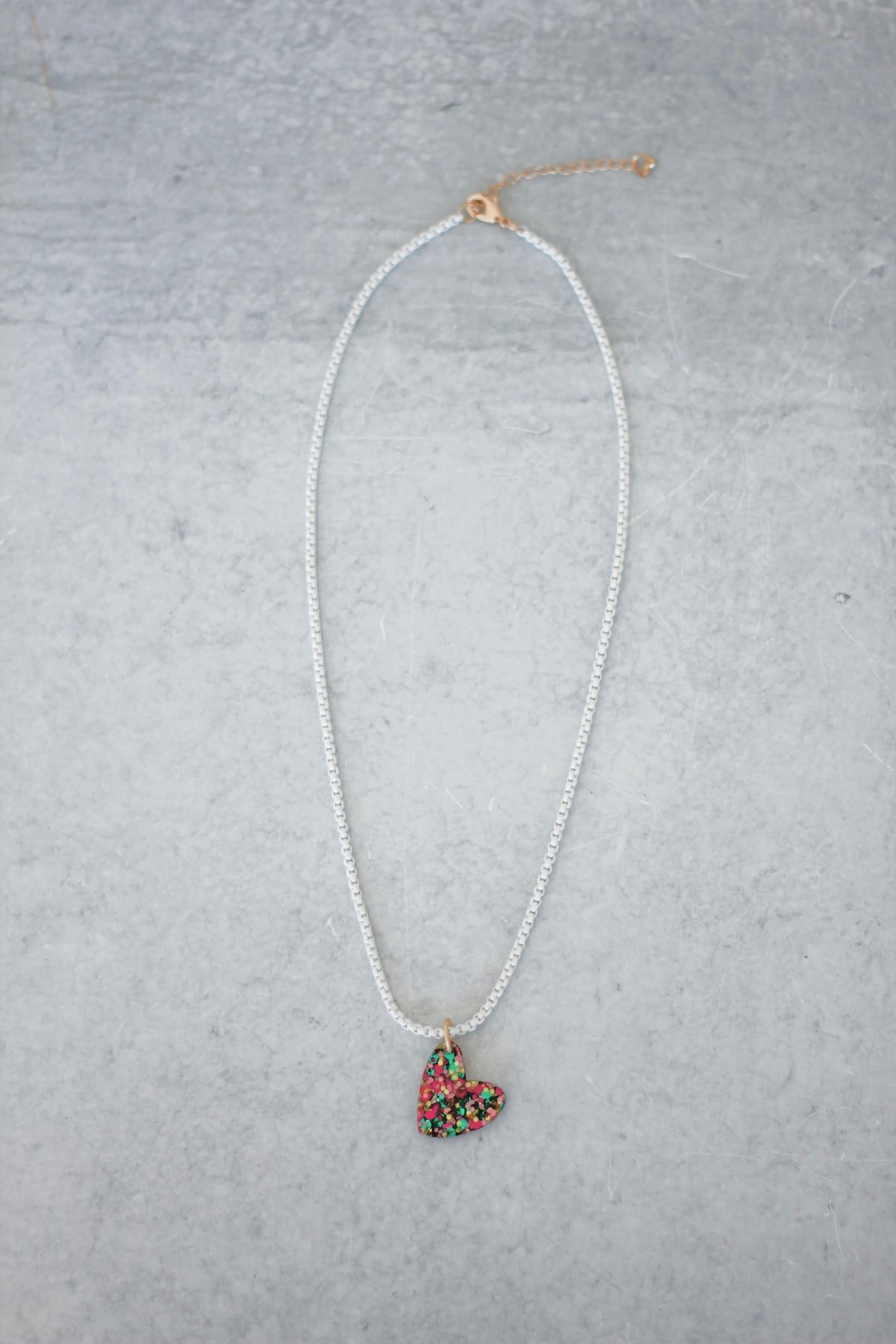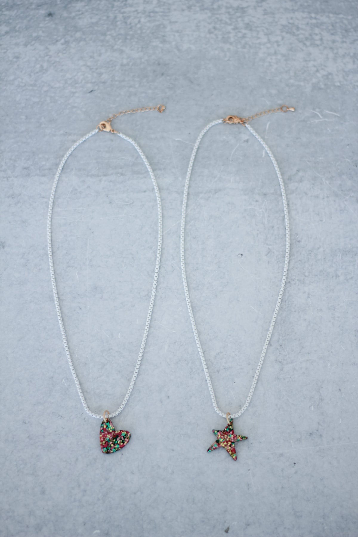 Our confetti charm necklaces with Mary Ryan Brown's favorite colors - pink and green.