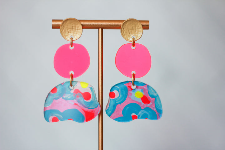A true original — just like you. Each pair of Palette Drop earrings features hand-painted acrylic by artist Mary Runkle Smith, laser-cut into bold, colorful shapes. Lightweight, vibrant, and one-of-a-kind, these wearable artworks bring a playful splash of creativity to any outfit.